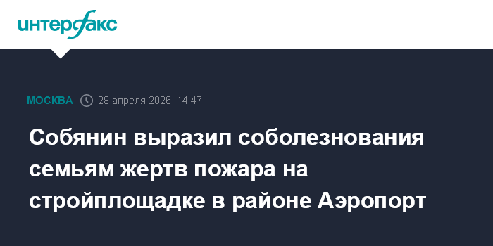 "Сегодня в городе на одной из частных строительных площадок в районе Аэропорт произошёл пожар, в результате которого погибли, по предварительным данным, семь человек. Мои глубокие соболезнования семьям погибших", - написал Собянин во вторник в своем канале в мессенджере Мах.