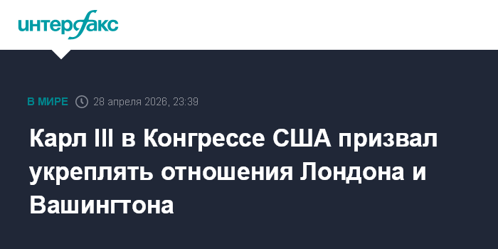 Москва. 28 апреля. INTERFAX.RU - Король Великобритании Карл III заявил об уникальности отношений Лондона и Вашингтона, подчеркнув необходимость укреплять их на фоне текущих мировых событий.