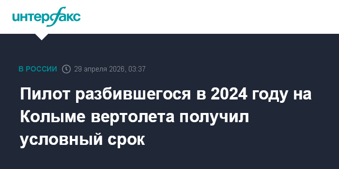 Пилот разбившегося в 2024 году на Колыме вертолета получил условный срок