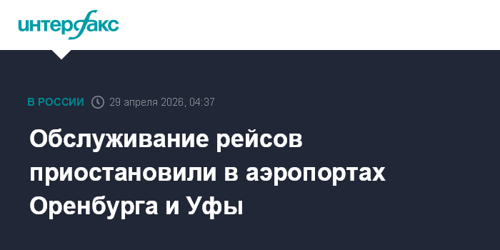 Москва. 29 апреля. INTERFAX.RU - Временные ограничения на прием и выпуск воздушных судов введены в аэропортах Оренбурга и Уфы, сообщает Росавиация.
