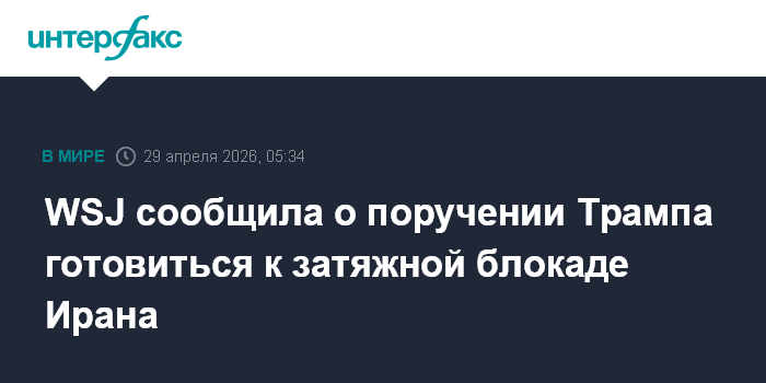 Москва. 29 апреля. INTERFAX.RU - Президент США Дональд Трамп поручил своим помощникам готовиться к затяжной блокаде Ирана. Об этом сообщает The Wall Street Journal (WSJ) со ссылкой на американских чиновников.