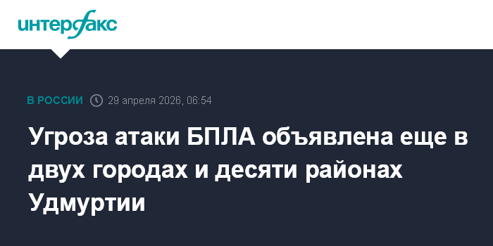 Ранее сообщалось об угрозе атаки БПЛА еще в четырех районах Удмуртии и о временном закрытии аэропорта Ижевска.