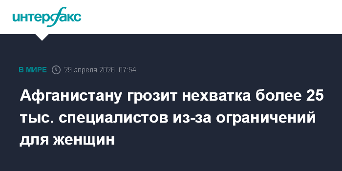 Согласно докладу, Афганистан сталкивается с двойным кризисом: сокращается число уже подготовленных специалисток и одновременно ограничиваются возможности подготовки новых кадров. К 2030 году страна может недосчитаться до 20 тыс. учительниц и 5,4 тыс. медицинских работниц.
