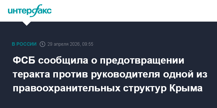 ФСБ сообщила о предотвращении теракта против руководителя одной из правоохранительных структур Крыма