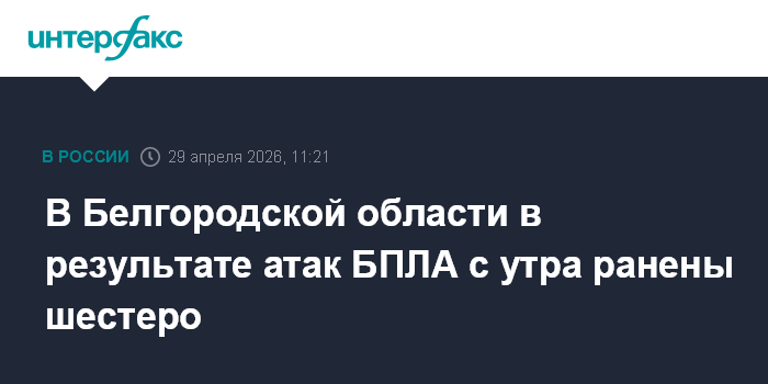 Москва. 29 апреля. INTERFAX.RU - В Белгородской области с утра в результате атак БПЛА ранены шесть человек, сообщил губернатор Вячеслав Гладков.