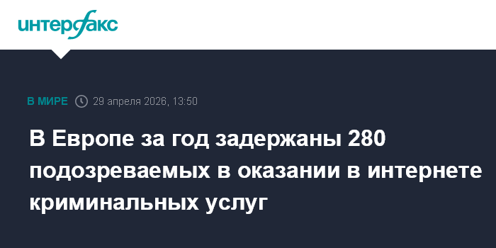 Москва. 29 апреля. INTERFAX.RU - В Европе за год 280 человек были задержаны в ходе международной полицейской операции GRIMM по борьбе с предоставлением в социальных сетях криминальных услуг, сообщает шведский вещатель SVT.