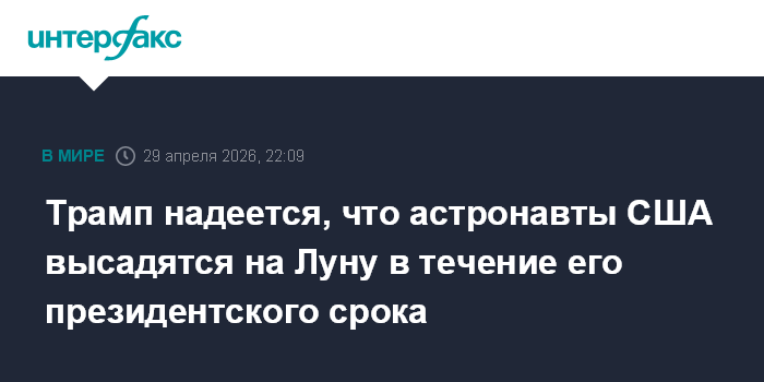 Москва. 29 апреля. INTERFAX.RU - Президент США Дональд Трамп считает, что американским астронавтам удастся вновь высадиться на Луну до завершения его второго президентского срока в 2029 году.