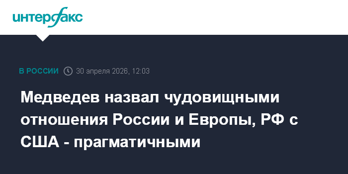 Медведев назвал чудовищными отношения России и Европы, РФ с США - прагматичными