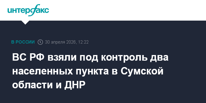 ВС РФ взяли под контроль два населенных пункта в Сумской области и ДНР