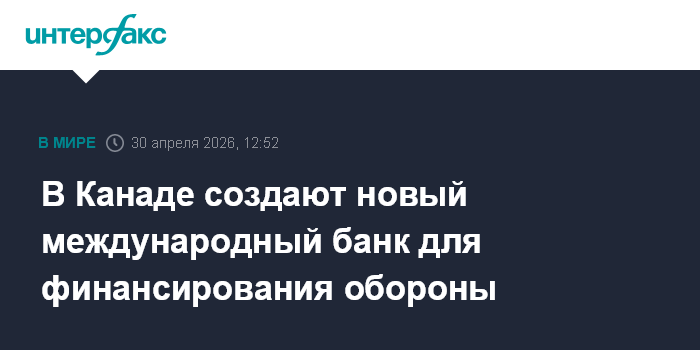 Москва. 30 апреля. INTERFAX.RU - В Канаде завершились переговоры по составлению устава нового Банка обороны, безопасности и устойчивости (Defence, Security and Resilience Bank, DSRB), сообщил канадский Минфин.