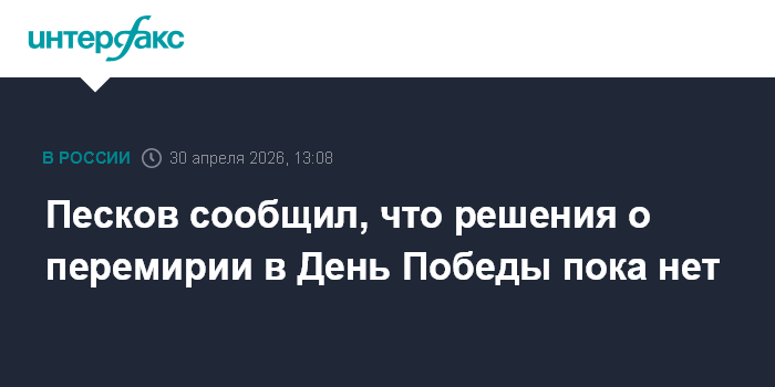 Песков сообщил, что решения о перемирии в День Победы пока нет