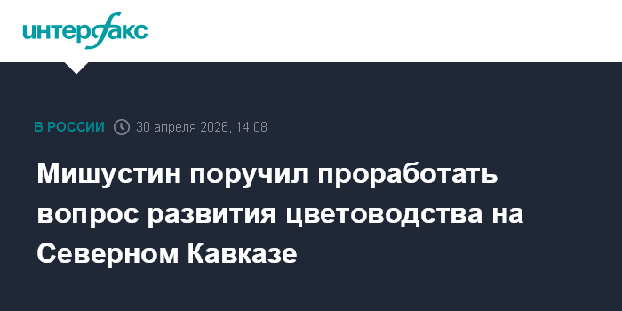 Москва. 30 апреля. INTERFAX.RU - Премьер-министр РФ Михаил Мишустин поручил проработать вопрос о развитии такого перспективного для Северного Кавказа направления, как цветоводство.