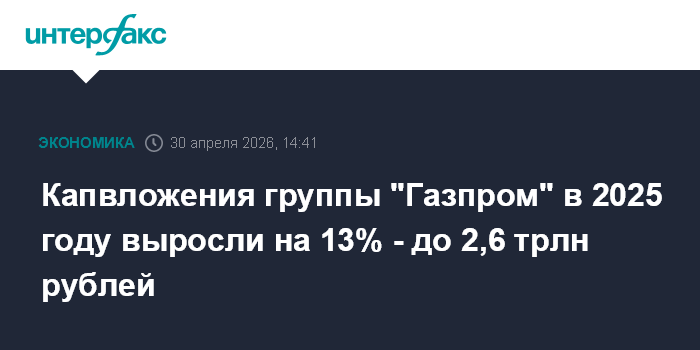 Капвложения группы "Газпром" в 2025 году выросли на 13% - до 2,6 трлн рублей