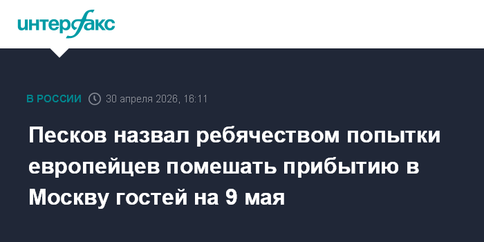 Москва. 30 апреля. INTERFAX.RU - В Кремле заявили, что попытки европейцев не пустить в Россию гостей на Парад Победы 9 мая - это "ребячество со знаком "минус".
