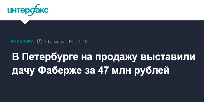 В Петербурге на продажу выставили дачу Фаберже за 47 млн рублей