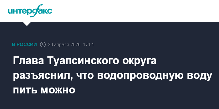 Москва. 30 апреля. INTERFAX.RU - Водопроводная вода в Туапсе пригодна для питья и не требует предварительного кипячения, сообщил глава Туапсинского округа Сергей Бойко.