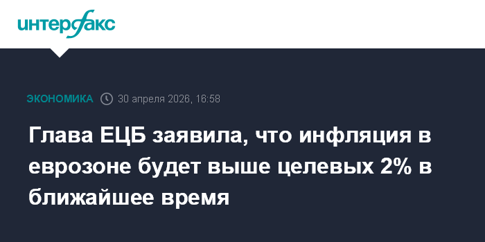 Москва. 30 апреля. INTERFAX.RU - Перспективы экономики еврозоны являются неопределенными и будут зависеть от продолжительности войны на Ближнем Востоке, а также последствий конфликта для цен на нефть и другие сырьевые товары, заявила президент Европейского центрального банка (ЕЦБ) Кристин Лагард в ходе пресс-конференции по итогам заседания в четверг.