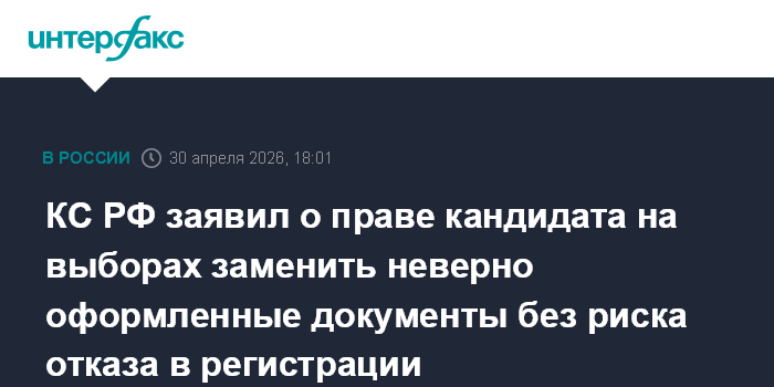 КС РФ заявил о праве кандидата на выборах заменить неверно оформленные документы без риска отказа в регистрации
