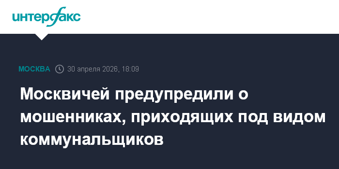 Москва. 30 апреля. INTERFAX.RU - Москвичам следует остерегаться мошенников, которые могут прийти к ним домой в майские праздники, притворившись коммунальщиками, предупреждает столичный комплекс городского хозяйства в четверг.