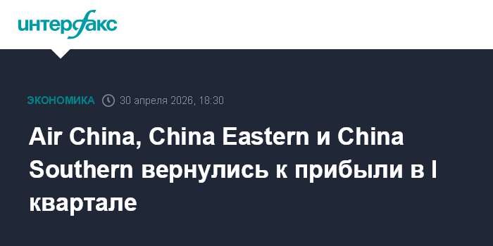 Москва. 30 апреля. INTERFAX.RU - Три крупнейших китайских авиаперевозчика Air China, China Eastern Airlines и China Southern Airlines в первом квартале вернулись на прибыльный уровень, однако скачок цен на топливо из-за войны на Ближнем Востоке омрачает перспективы и снижает вероятность сохранения позитивных результатов, сообщает The Wall Street Journal.