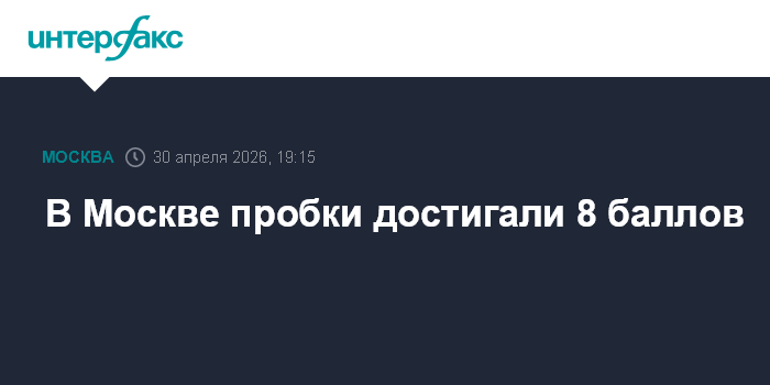 Москва. 30 апреля. INTERFAX.RU - В Москве к 19:00 пробки достигали восьми баллов, сообщил городской Департамент транспорта со ссылкой на данные ЦОДД. В 19:15 карты "Яндекса" показывали семибалльные пробки.