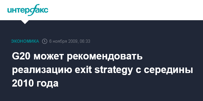 G20 может рекомендовать реализацию exit strategy с середины 2010 года