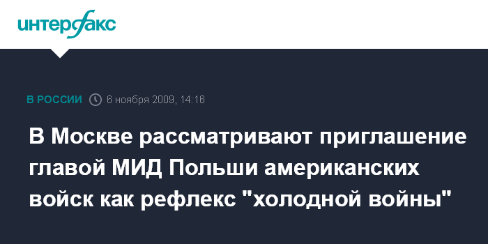 В Москве рассматривают приглашение главой МИД Польши американских войск как рефлекс "холодной войны"