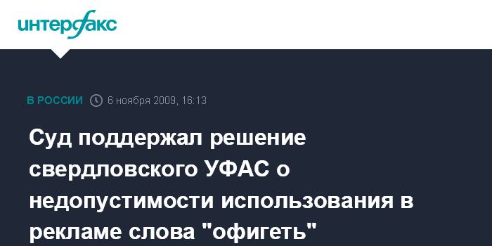 Суд поддержал решение свердловского УФАС о недопустимости использования в рекламе слова "офигеть"