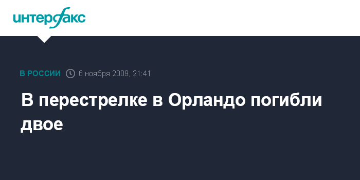 Вашингтон. 6 ноября. INTERFAX.RU - Минимум двое человек погибли и шестеро получили ранения во время перестрелки в американском городе Орландо (штат Флорида), сообщают в пятницу местные СМИ.