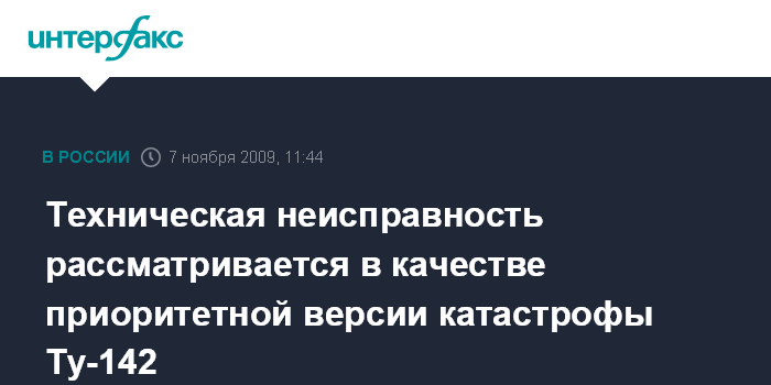 Техническая неисправность рассматривается в качестве приоритетной версии катастрофы Ту-142
