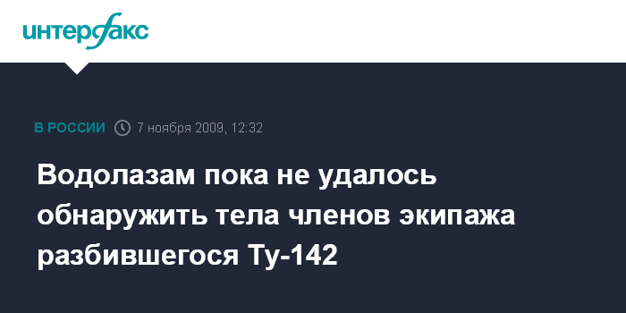 Москва. 7 ноября. INTERFAX.RU - В Татарском проливе у побережья Хабаровского края в субботу продолжается операция по поиску летчиков - членов экипажа самолета Ту-142, разбившегося накануне вечером.