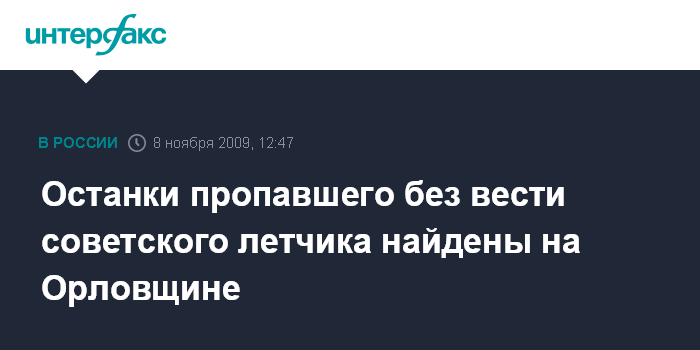 Останки пропавшего без вести советского летчика найдены на Орловщине