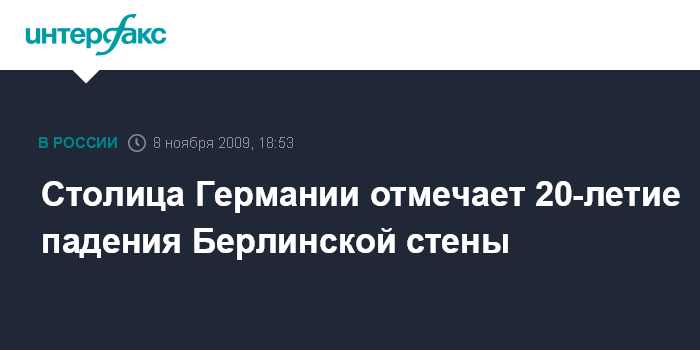 Берлин. 8 ноября. INTERFAX.RU - Двадцатилетний юбилей открытия границы между Западной и Восточной Германией и падения Берлинской стены отпразднуют в понедельник в Берлине. Официальная программа довольно обширна. Так, один из бывших пропускных пунктов на границе Восточного и Западного Берлина в районе Борнхольмер штрассе посетит канцлер ФРГ Ангела Меркель. В этом мероприятии также примут участие бывшие лидеры некоторых стран, в частности, экс-президент СССР Михаил Горбачев и экс-президент Польши Лех Валенса. Затем празднования переместятся к Бранденбургским воротам, которые стоят как раз на том месте, где город разрезала стена. Здесь соберутся уже лидеры дня сегодняшнего. Ожидается, в частности, участие президентов России и Франции Дмитрия Медведева и Николя Саркози, госсекретаря США Хиллари Клинтон и многих других. Для них и остальных гостей мероприятия у Бранденбургских ворот будет дан торжественный концерт.