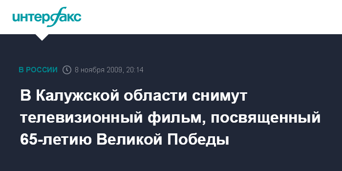В Калужской области снимут телевизионный фильм, посвященный 65-летию Великой Победы