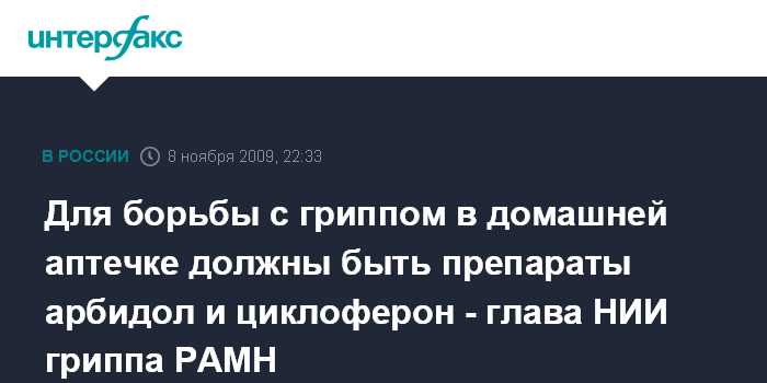 Для борьбы с гриппом в домашней аптечке должны быть препараты арбидол и циклоферон - глава НИИ гриппа РАМН