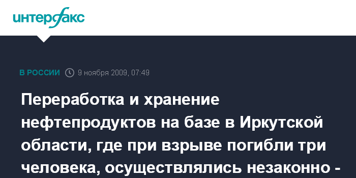 Переработка и хранение нефтепродуктов на базе в Иркутской области, где при взрыве погибли три человека, осуществлялись незаконно - СКП