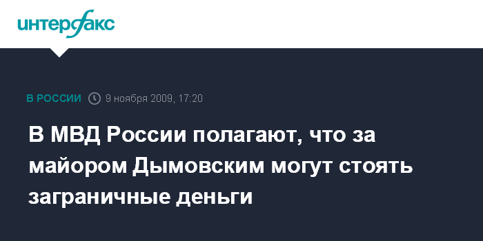 В МВД России полагают, что за майором Дымовским могут стоять заграничные деньги