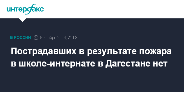 Махачкала. 9 ноября. INTERFAX.RU - В результате пожара, произошедшего в понедельник вечером в спортивной школе-интернате в селении Халимбекаул Дагестана, пострадавших нет, сообщили в "Интерфаксу" в пресс-службе главного управления МЧС России по республике.