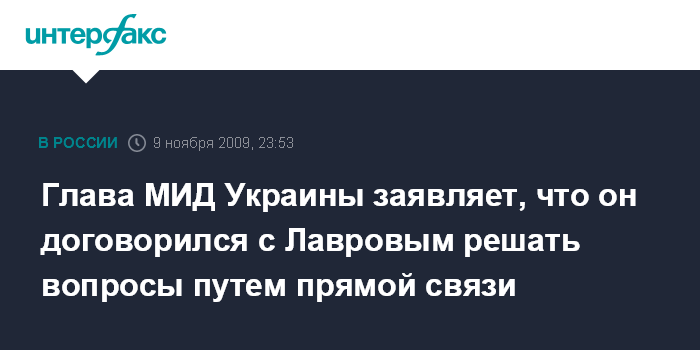 "Мы с моим коллегой (глава МИД РФ Сергей Лавров - "ИФ") договорились, что со стороны министерства иностранных дел, безусловно, еженедельно возникает ряд очень важных вопросов. И мы попытаемся, и я подтверждаю, что эти договоренности работают, решать эти проблемы не через ленты информационных агентств, телевизионные эфиры, а путем прямой связи, hot-line - горячей линии", - сказал он в эфире программы "Шустер-live" в понедельник.