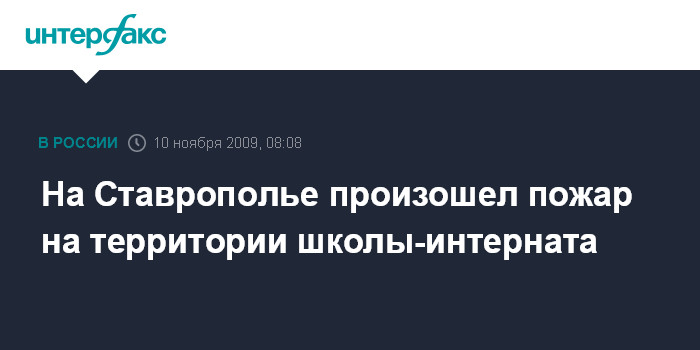 Ставрополь. 10 ноября. INTERFAX.RU - В селе Подлужное Изобильненского района Ставропольского края в ночь на вторник произошел пожар на территории школы-интерната.