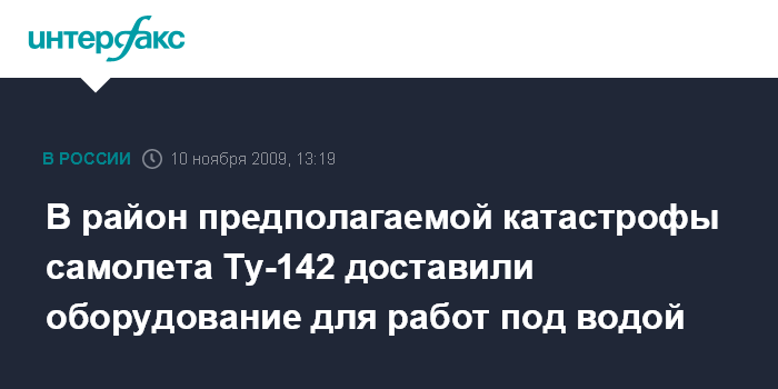 Москва. 10 ноября. INTERFAX.RU - В район катастрофы противолодочного самолета Ту-142М3 во вторник прибыло спасательное судно "Алагез" со специальным оборудованием для подводных работ, сообщил "Интерфаксу-АВН" командующий Тихоокеанским флотом вице-адмирал Константин Сиденко.