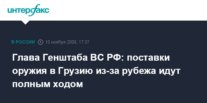 "Поставки оружия в Грузию идут полным ходом. Потенциал (военный - "ИФ") Грузии сегодня значительно выше, чем в августе прошлого года", - сказал Макаров, отвечая на вопросы журналистов во вторник в Москве.
