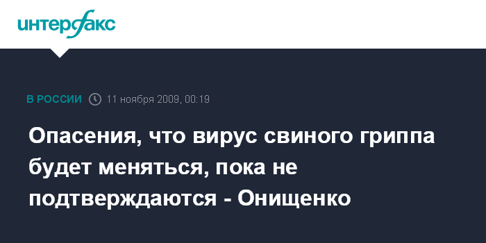 "Нас с самого начала волновала ситуация с изменчивостью вируса. Худшие опасения, что он будет меняться, пока не подтверждаются. К счастью, он не мутировал так, чтобы можно было сказать, что он стал более агрессивным", - сказал Г.Онищенко "Интерфаксу".