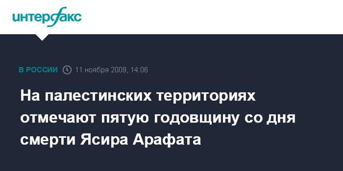 Иерусалим. 11 ноября. INTERFAX.RU - Палестинцы в среду отмечают пятую годовщину со дня смерти председателя Палестинской национальной администрации (ПНА) Ясира Арафата.