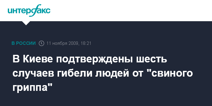 Киев. 11 ноября. INTERFAX.RU - В Киеве лабораторно подтвержден 31 случай заболевания гриппом A/H1N1, в том числе шесть смертельных случаев, сообщила первый заместитель главы Киевской городской администрации Ирэна Кильчицкая на пресс-конференции в среду.