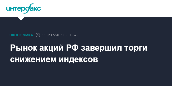 Москва. 11 ноября. INTERFAX.RU - Рынок акций РФ, большую часть дня торговавшийся в плюсе вместе с мировыми фондовыми площадками, завершил торги снижением индексов после прогноза ОПЕК о мировом спросе на сырье в текущем году.