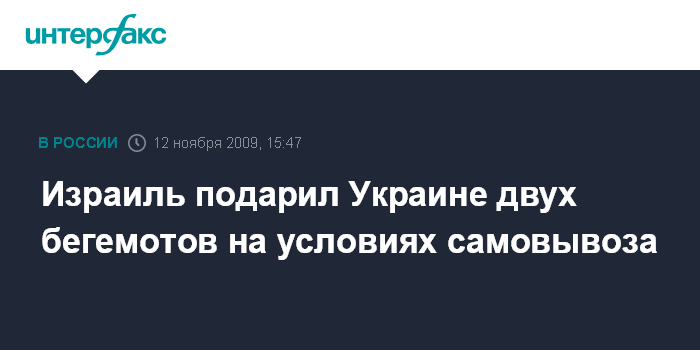 Израиль подарил Украине двух бегемотов на условиях самовывоза