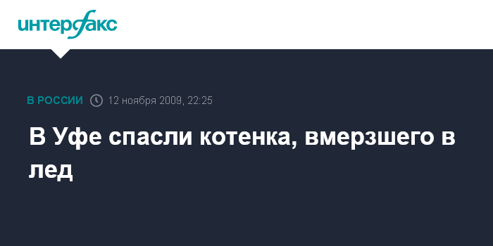 Уфа. 12 ноября. ИНТЕРФАКС-ПОВОЛЖЬЕ - Спасатели вызволили из беды котенка, примерзшего шерсткой ко льду озера на окраине уфимского микрорайона Шакша.