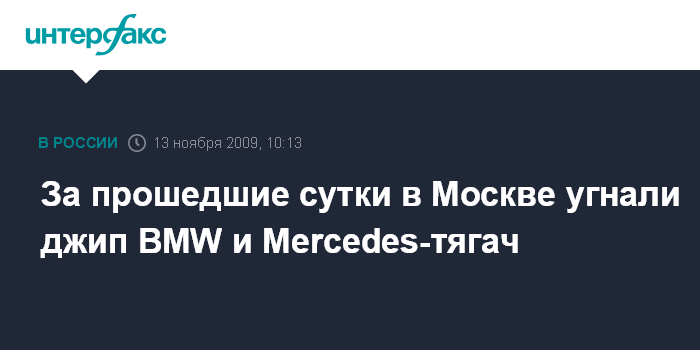 За прошедшие сутки в Москве угнали джип BMW и Mercedes-тягач