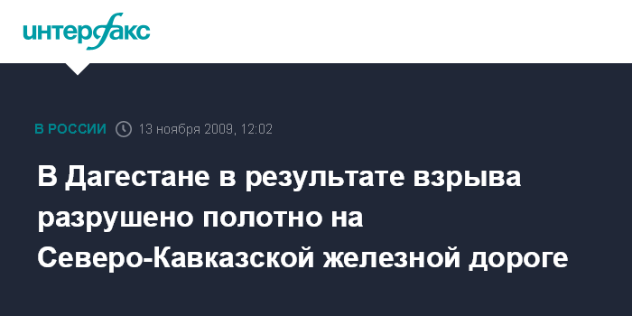 Москва. 13 ноября. INTERFAX.RU – На железной дороге в Дагестане сработало взрывное устройство, обнаруженное в пятницу утром, сообщили "Интерфаксу" в группе общественных связей УФСБ России по Дагестану.